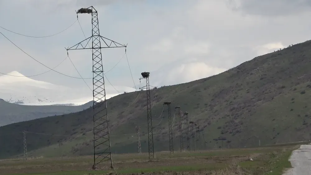 Kış aylarını daha sıcak bölgelerde geçiren leylekler, havaların ısınmasıyla birlikte Muş Ovası'na dönüş yaparken, söz konusu güzergahtaki yuvalarına da birer birer yerleşti. Aralıksız şekilde sıralanan yuvalar, hem sürücülere hem de bölge halkına görsel bir şölen sunuyor.