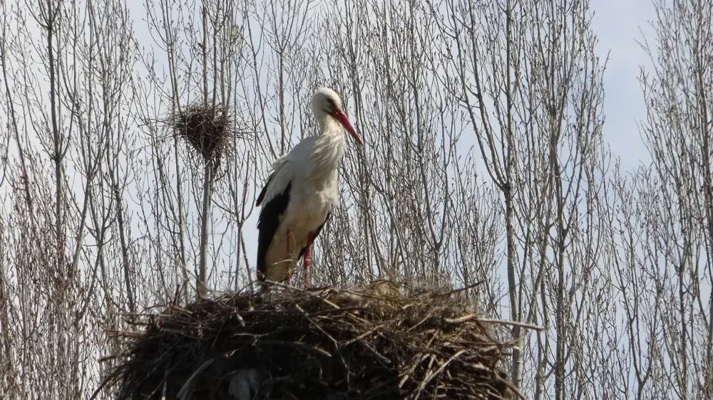Göç yolculuğunu tamamlayarak yuvalarına yerleşen leyleklerin önümüzdeki günlerde eşleşme ve yavrulama dönemine girmesi bekleniyor. (İHA)