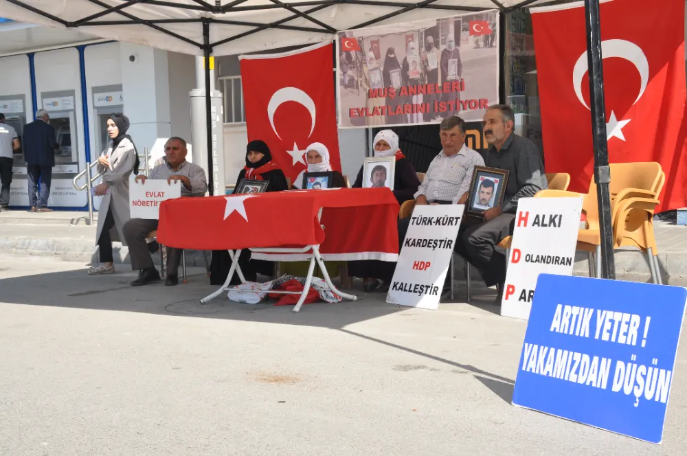 Çocuklarına kavuşma ümidiyle Diyarbakır annelerinin başlattığı eyleme destek veren aileler, her hafta çarşamba günü yaptıkları eylemi bu hafta da sürdürdü. HDP İl Başkanlığı binası önünde bir araya gelen aileler, "Halk düşmanı parti", "Evlatlarımızı vereceksiniz", "Ha HDP ha PKK", "Türk-Kürt kardeştir, HDP kalleştir", "Halkı dolandıran parti", "Anneler direniyor", "Artık yeter yakamızdan düşün" ve "Yeter artık evlatlarımızı bırakın" yazılı pankartlar açtı. Çocuklarının fotoğraflarıyla eyleme katılan anne ve babalar, evlatlarına "teslim ol" çağrısında bulundu.