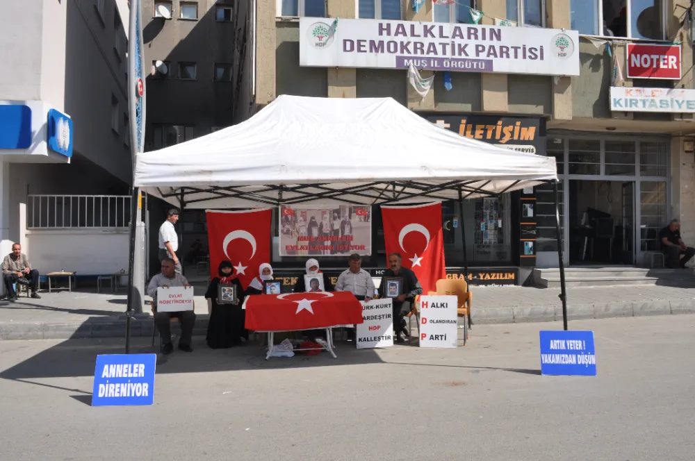 Muş'ta, çocuklarının terör örgütü PKK tarafından dağa götürülmesinden HDP'yi sorumlu tutan aileler, partinin il başkanlığı önünde oturma eylemi yaptı.