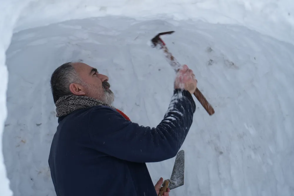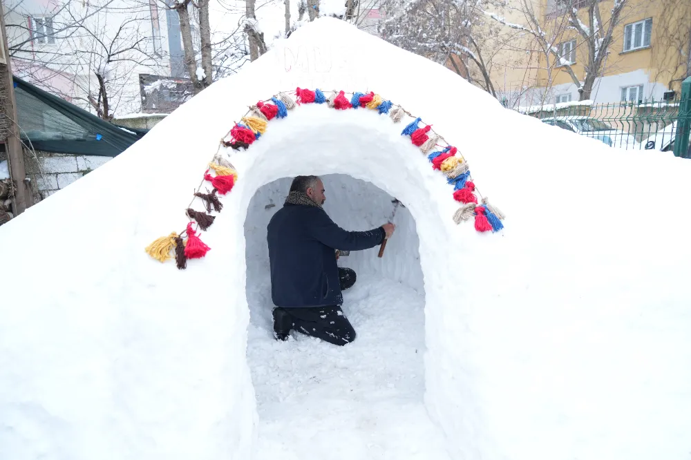 Muş'un Kültür Mahallesi’nde çay ocağı işleten Yılmaz Alak, kar yağışını eğlenceye dönüştürerek yaptığı iglo kahvehaneyle vatandaşlardan büyük ilgi gördü.