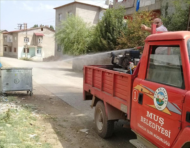 Muş Belediyesi, sıcak yaz günlerinde pandemi ve sağlık problemlerinin önüne geçmek için kentin tüm noktalarında ilaçlama çalışması yapıyor. Ekipler ilaçlama çalışmalarını günde iki kez gerçekleştiriyor