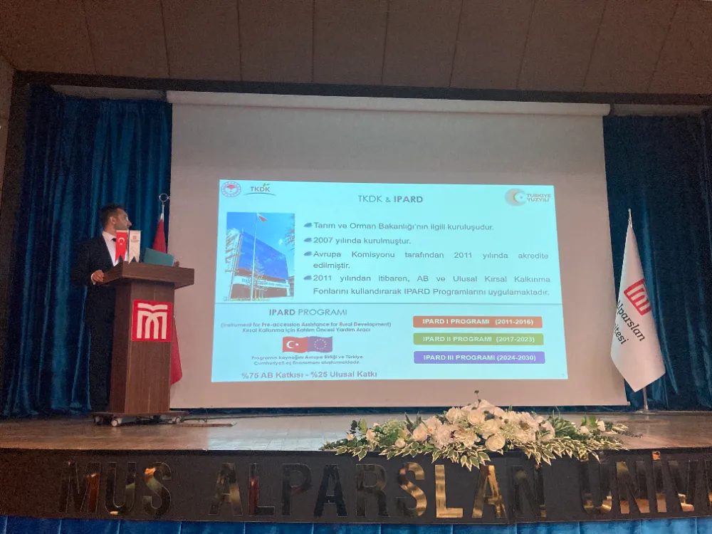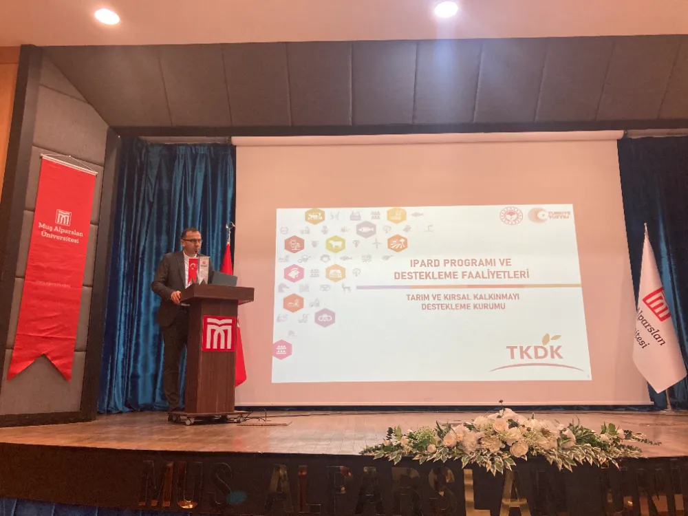 Muş Alparslan Üniversitesi’nde düzenlenen seminerde Tarım ve Kırsal Kalkınmayı Destekleme Kurumu Muş İl Koordinatörlüğü tarafından IPARD tanıtımı gerçekleştirildi.