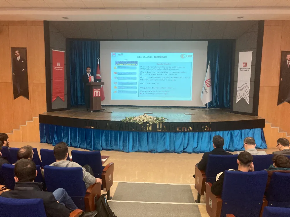 Muş Alparslan Üniversitesi ev sahipliğinde IPARD Programı ve TKDK’nın Destekleme Faaliyetleri konulu seminer düzenlendi. Rektör Yardımcısı Prof. Dr. Yaşar Karadağ, İnşaat Bölüm Başkanı ve Program Koordinatörü Zekeriya Artun ile akademisyen ve öğrencilerin katıldığı programda konuşan TKDK Muş İl Koordinatörü Bünyamin Süne, iş hayatına yönelik bilgi ve tecrübelerini paylaştı. Öğrencilerin kariyer planlaması yaparken üniversite sıralarından başlayarak dikkat etmeleri gereken hususlara değinen Süne, dönemin gerekliliklerine ayak uydurmanın ve özellikle yabancı dil öğrenmenin her iş kolu için büyük önem taşıdığını kaydetti.
