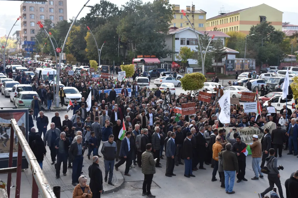 Muş'ta sivil toplum kuruluşları öncülüğünde düzenlenen yürüyüşte İsrail'in Gazze'ye yönelik saldırıları protesto edildi.