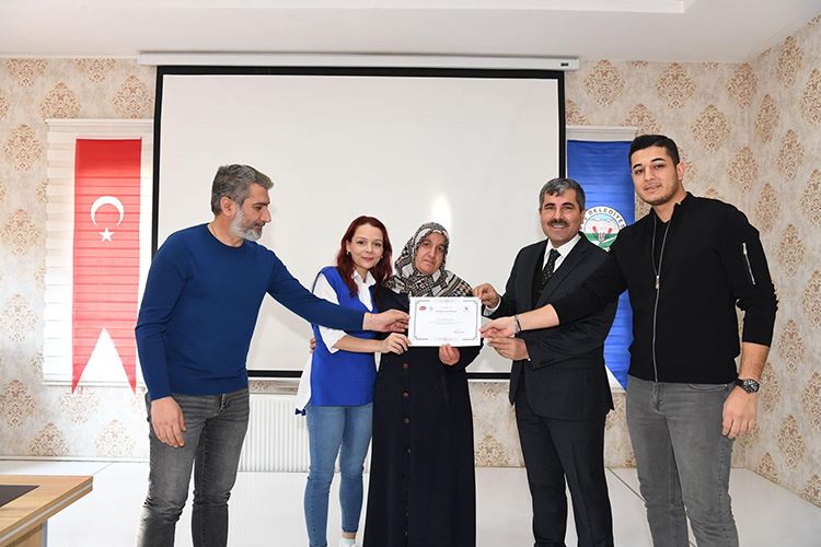 Porsor Ana Kadın Eğitim ve Kültür Merkezinde düzenlenen kurs sonunda eğitimlerini tamamlayan kursiyerlere sertifikaları Belediye Başkanı Feyat Asya tarafından verildi. Başkan Asya, kurs hocası Hilal Toktaş’a emeklerinden dolayı teşekkür etti.