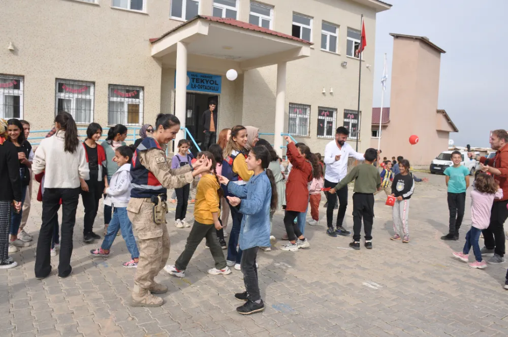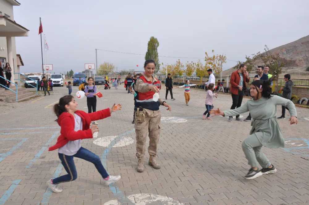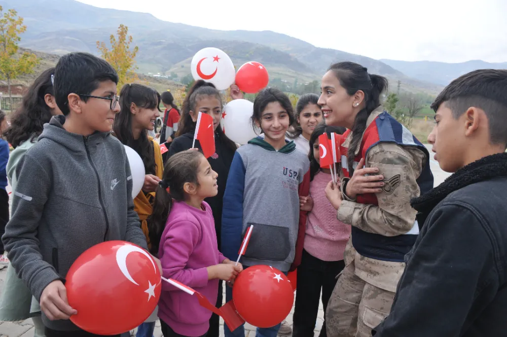 Muş'ta kadın komutanlar, Cumhuriyet'in 100. yıl etkinlikleri kapsamında, köy çocuklarıyla oyunlar oynayarak eğlenceli vakit geçirmelerini sağladı.