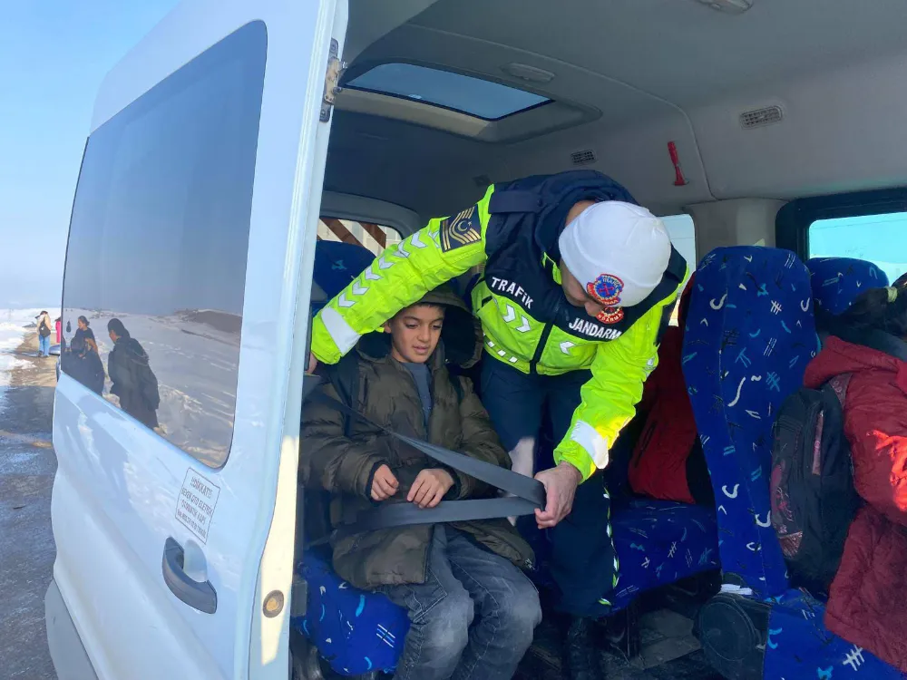 Jandarma Komutanlığı trafik ekipleri okul servislerine yönelik denetim yapıp, öğrencilerin güvenli seyahat etmelerini sağlıyor