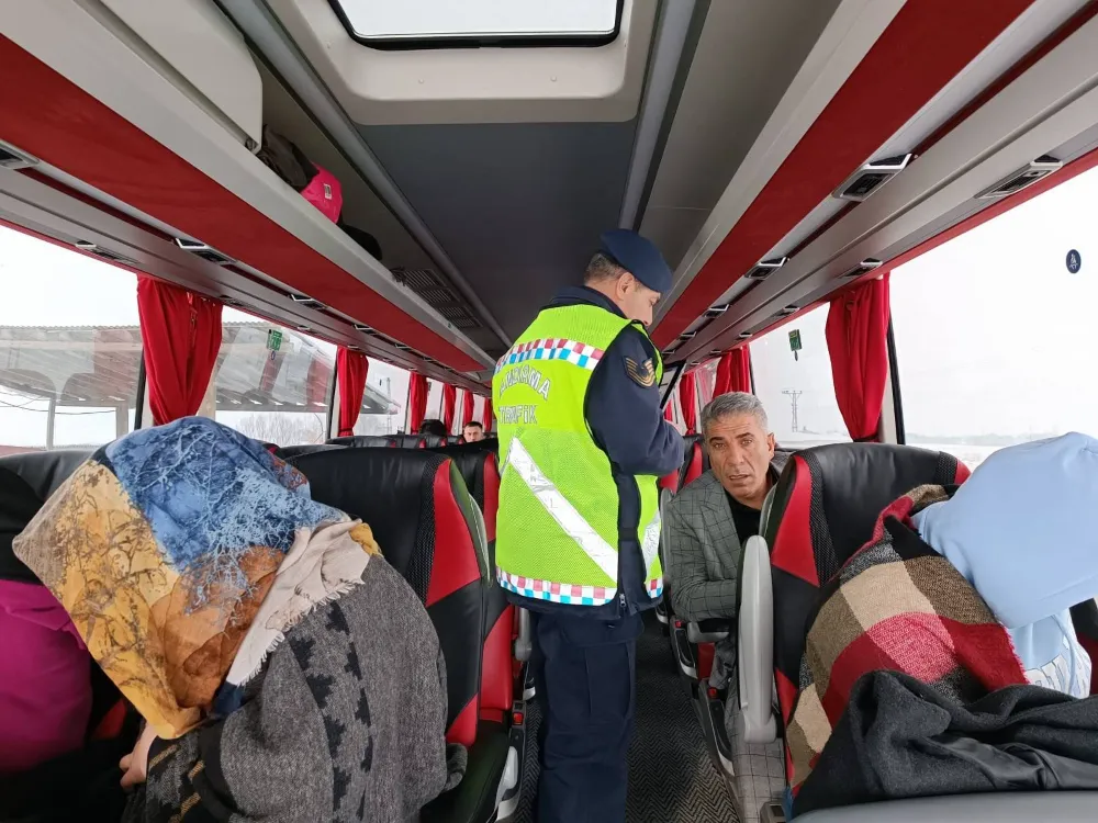 JANDARMA YOLCU OTOBÜSLERİNİ DENETLEDİ