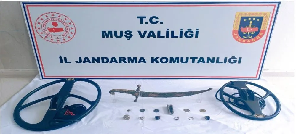 Muş İl Jandarma Komutanlığı Kaçakçılık ve Organize Suçlarla Mücadele (KOM) ile İstihbarat Şube Müdürlüklerince yürütülen istihbari çalışmalar sonucu, merkez ilçede ikamet eden Ü.T. isimli şahsın elinde bulunan tarihi eserleri satmak amacıyla müşteri aradığı bilgisine ulaşıldı. Elde edilen bilgiler doğrultusunda Muş Sulh Ceza Hakimliğinden alınan arama kararına istinaden şüphelinin ikametinde arama yapıldı. Aramada, Müze Müdürlüğü tarafından Osmanlı dönemine ait olduğu değerlendirilen 1 hançer/kama, 5 sikke, 6 yüzük ve 1 taş obje ele geçirildi. Ayrıca kaçak kazılarda kullanıldığı değerlendirilen 2 metal dedektör başlığına da el konuldu. Ele geçirilen tarihi eserlere muhafaza altına alınmak üzere el konulurken, Muş Cumhuriyet Savcısının talimatıyla olayla ilgili adli tahkikat başlatıldı. Şüpheli şahıs, ifadesinin alınmasının ardından serbest bırakıldı.