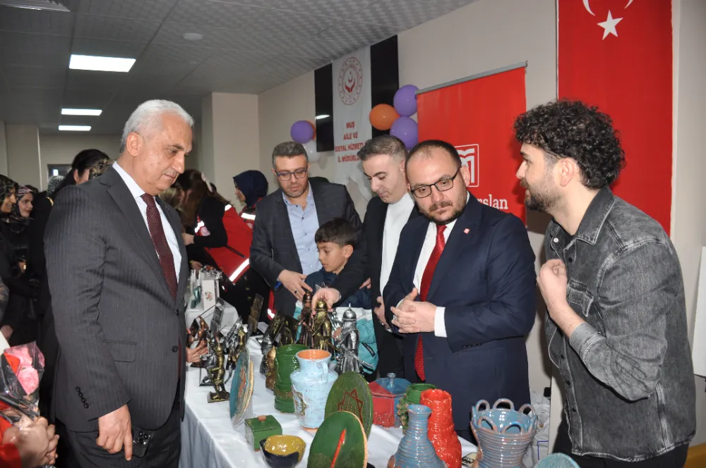 Yapılan konuşmaların ardından Aile Destek Merkezi (ADEM), Muş Belediyesi Bilgi Evleri, Halk Eğitimi Merkezi, Muş Gençlik ve Spor İl Müdürlüğü Genç Ofisleri ile Muş Alparslan Üniversitesi tarafından açılan kurslara katılan kadın kursiyerler tarafından yapılan ürünlerin yer aldığı serginin açılışı yapıldı.