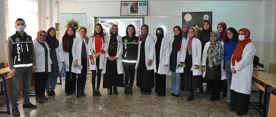 Bilgilendirme toplantıları kapsamında son olarak Merkez Selahattin Eyyübi İmam Hatip Lisesi kadın öğretmenleri ile bir araya gelen ekipler öğretmenlere uyuşturucu nedir, madde bağımlılığı nedir, uyuşturucuya başlama nedenleri, bağımlılık döngüsü, madde bağımlılığı ile mücadele çözüm merkezleri, narkotik suçlarla mücadelenin önemi ve KADES uygulaması başlıkları altında bilgiler verdiler. Öğretmenlere ayrıca UYUMA aplikasyonu ve KADES uygulaması ile ilgilide bilgiler verildi.