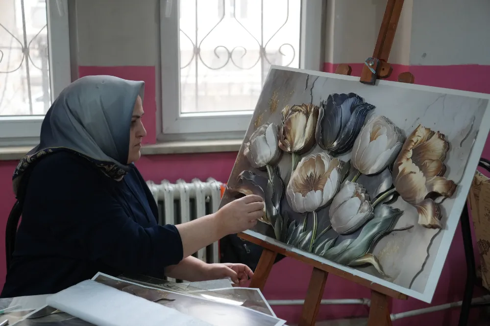 Muş Halk Eğitim Merkezi’nde açılan kâğıt rölyef kursuna katılan kadınlar, el becerilerini geliştirerek hem meslek öğreniyor hem de ürettikleri üç boyutlu tablolarla aile ekonomisine katkı sağlıyor. Kursiyerler, eğitimlerini tamamladıktan sonra sertifika alarak usta öğretici olma imkânına da kavuşuyor.