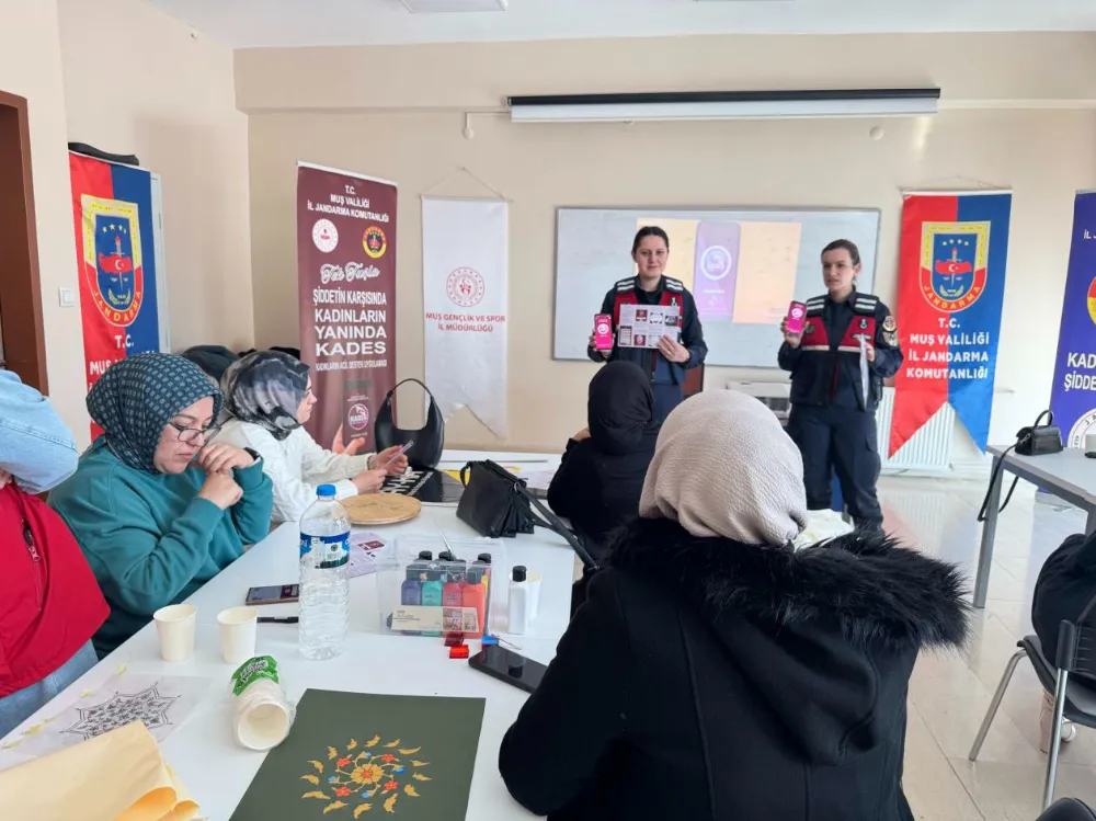 Muş İl Jandarma Komutanlığı Asayiş Şube Müdürlüğü bünyesinde görev yapan Aile İçi Şiddetle Mücadele ve Çocuk Kısım Amirliği personelleri tarafından düzenlenen etkinlikte, kadınların hakları, yasal koruma mekanizmaları ve başvuru yolları hakkında kapsamlı bilgiler paylaşıldı. Programda özellikle Kadın Destek Uygulaması (KADES), 6284 sayılı kanun ile erken yaşta ve zorla evlilik konuları ele alındı.
