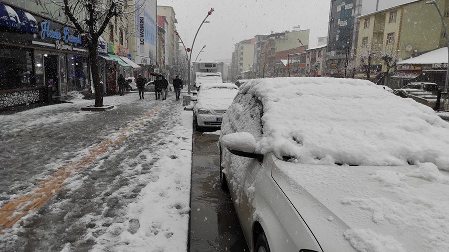 Muş’ta şehir merkezinde önceki gün etkisini göstermeye başlayan kar yağışı aralıksız yağmaya devam ediyor. iki gündür şehri etkisi altına alan kar yağışı nedeniyle hayat olumsuz yönde etkileniyor. Esnaflar işyerlerini önü temizlerken, araç sahipleri ise araçlarının üzerlerinde biriken karları temizliyor. Öte yandan trafikte ise araçlar güçlükle ilerliyor.