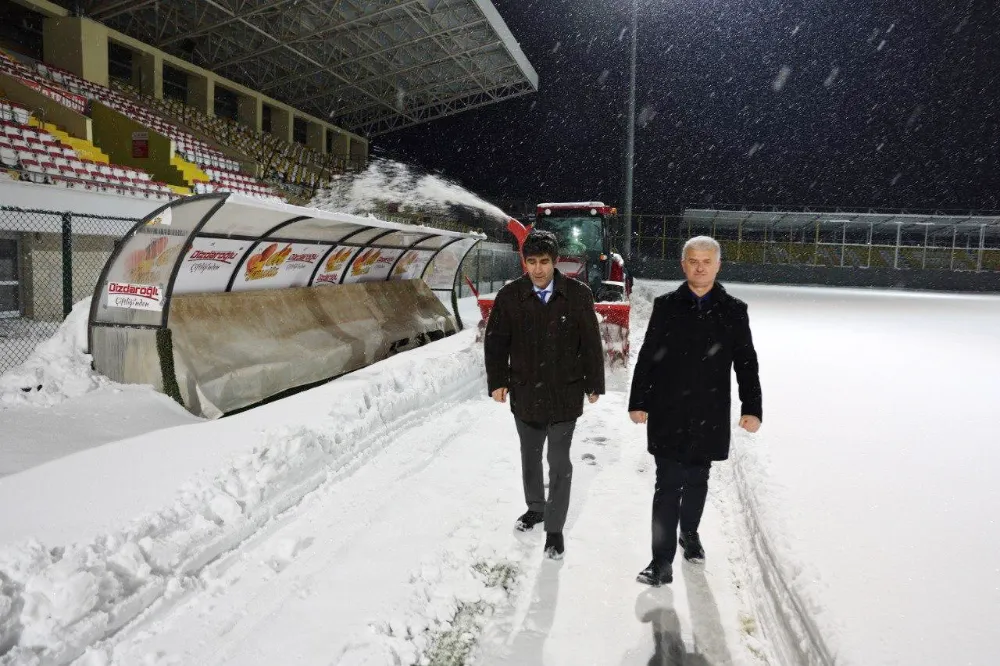 Kar yağışının stadyum zemininde ciddi birikintilere yol açması üzerine Gençlik ve Spor İl Müdürlüğü ekipleri hızla harekete geçti. Gençlik ve Spor Bakanlığı tarafından sağlanan teknik donanım ve ekipmanlar kullanılarak sahada kar temizleme çalışmaları başlatıldı. Özellikle kar savurma makineleriyle yürütülen çalışmalarla, futbol oynanabilir bir zemin oluşturulması hedefleniyor.