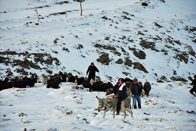 Muş´ta küçükbaş ve büyükbaş hayvanlarını Kayalısu köyünden ovaya indirmeye çalışan vatandaşlar, kar ve soğuk hava nedeniyle yollarına devam edemedi. Durumu Jandarmaya bildiren hayvan sahipleri yardım istedi. Olayın AFAD, İl Özel İdare, 112 ve UMKE´ye bildirilmesi üzerine harekete geçen ekipler, mahsur kalan vatandaşlar için seferber oldu.