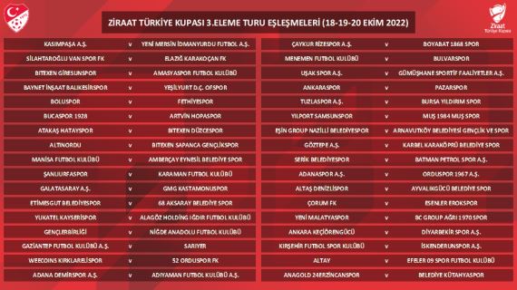 Ziraat Türkiye Kupası 3. Eleme Turunda 68 takım seri başı sistemine göre eşleşti. Müsabakalar 18, 19 ve 20 Ekim tarihlerinde tek maç eleme sistemine göre oynanacak.
