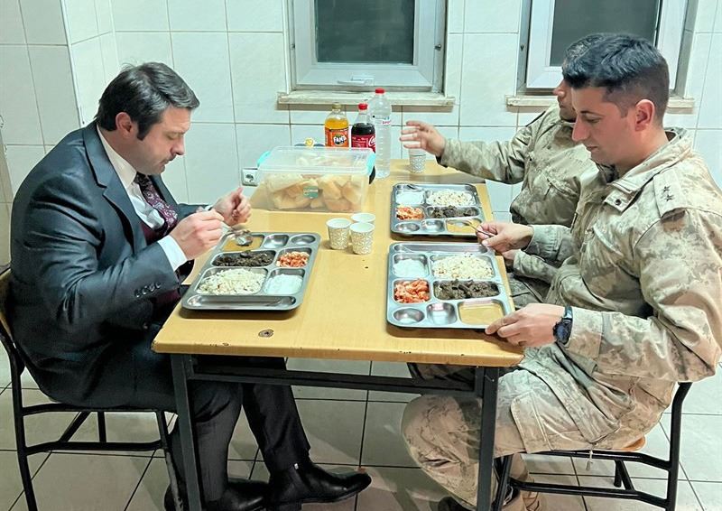 Muş’un Bulanık Kaymakamı ve Belediye Başkan Vekili Oğuzhan Ocak, ilçe genelinde başlattığı ziyaretlerine devam ediyor. Kaymakam Ocak, Erentepe Belde Karakolunda askerlerle bir araya geldi. Akşam yemeğini askerlerle birlikte yiyen Kaymakam Ocak, sorun ve sıkıntılarını dinledi.