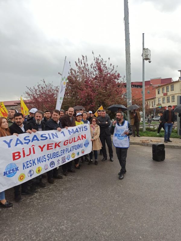 Belediye meydanında yapılan basın açıklamasına çok sayıda KESK üyesi katılırken Basın açıklamasını KESK Muş Şubeler platformu dönem sözcüsü Eğitim Sen Şube Başkanı İlyas Aslan yaptı.