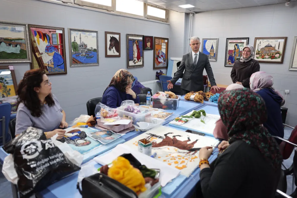 İl Müdürü Kılıç’ın ziyaretinde ilk duraklardan biri Güzel Sanatlar Atölyesi oldu. “Keçe, Seramik ve Geri Dönüşüm” eğitimi alan gençlerle bir araya gelen Kılıç, yapılan çalışmaları inceledi. El emeği ürünleri tek tek gözden geçiren Kılıç, gençlerle sohbet ederek eğitim süreci hakkında görüşlerini dinledi.
