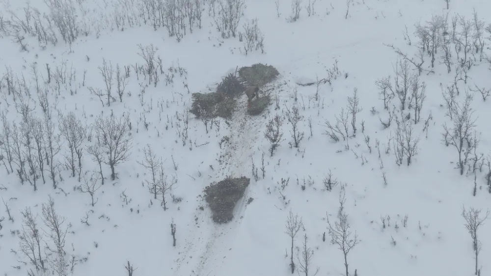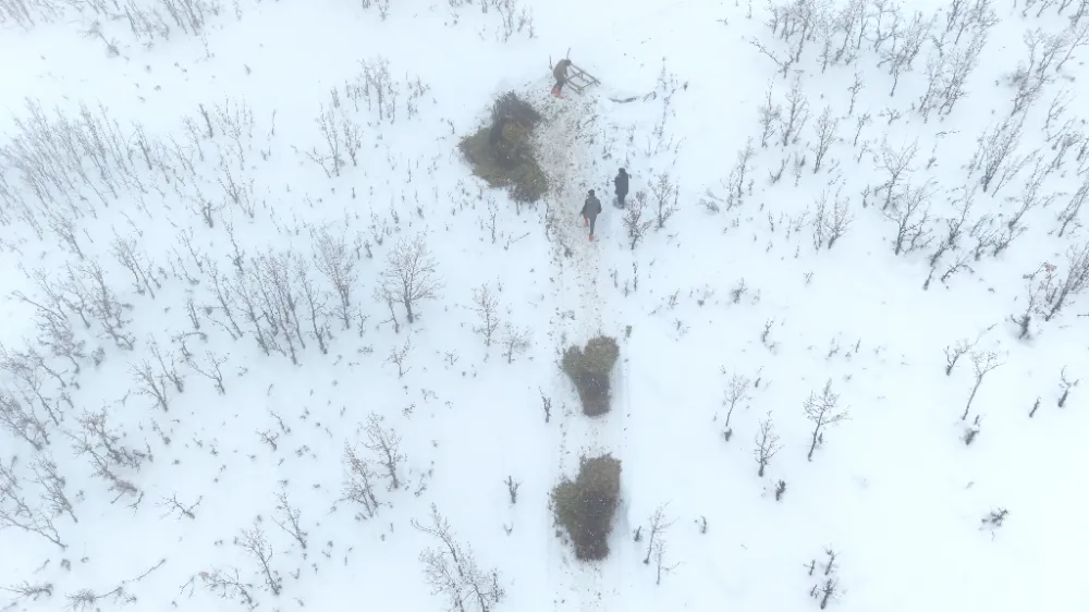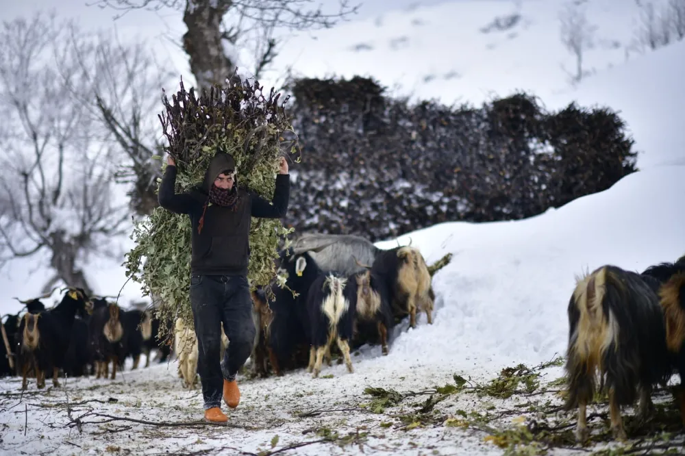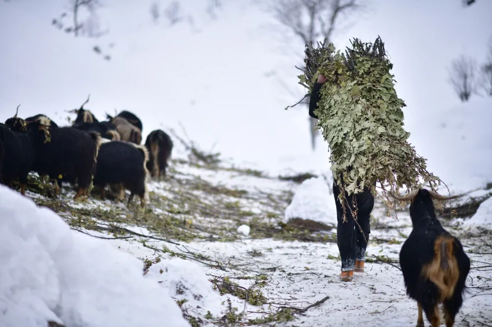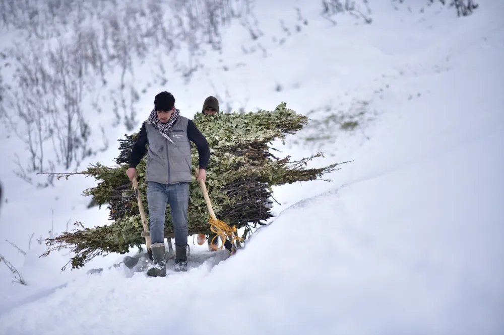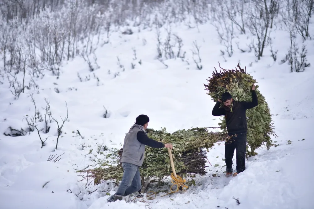 Kar kalınlığının yer yer 3 metreyi bulduğu bölgede besiciler, yaz aylarında topladıkları meşe yapraklarını kış boyunca hayvan yemi olarak kullanıyor. Yaz aylarında traktörlerin giremediği sarp arazilerde meşe yapraklarını toplayan, kışın da kızaklara yükleyen besiciler, yaklaşık 2 kilometrelik yolu yürüyerek kat ediyor.