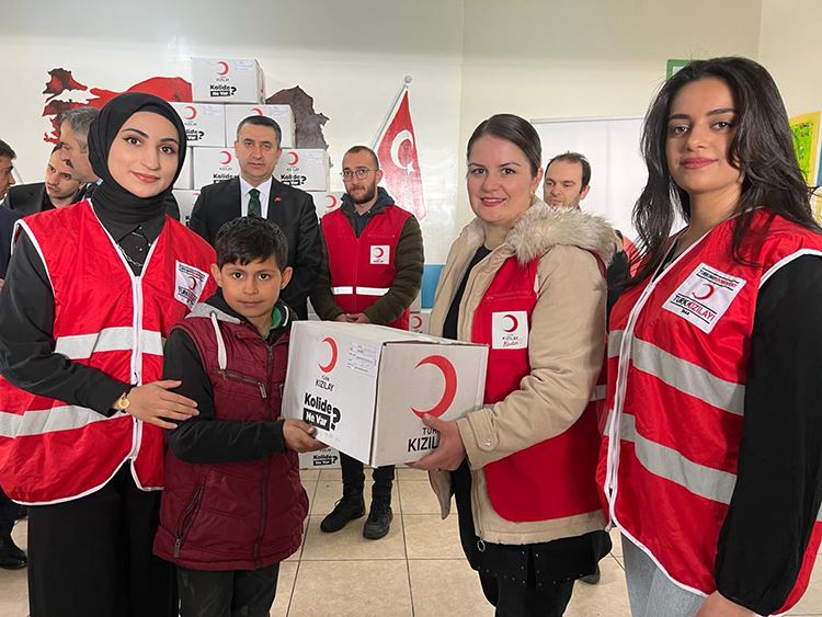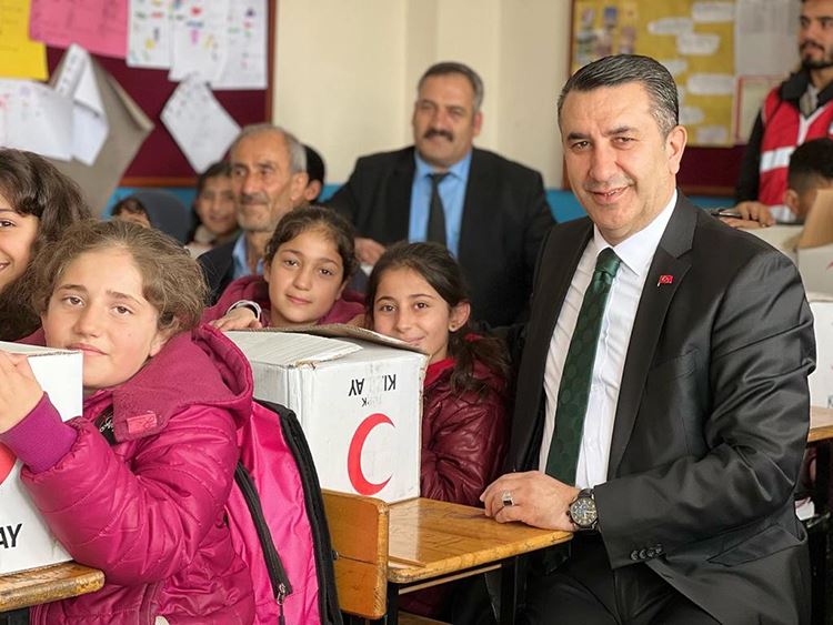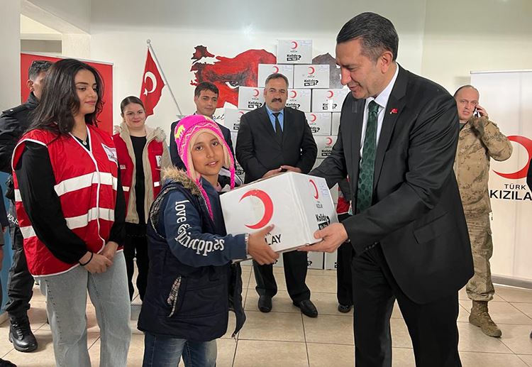 Türk Kızılay Genel Merkez Yönetim Kurulu Üyesi Cengiz Koç’un desteğiyle gönderilen hediyeler okuldaki 229 öğrenciye dağıtıldı.