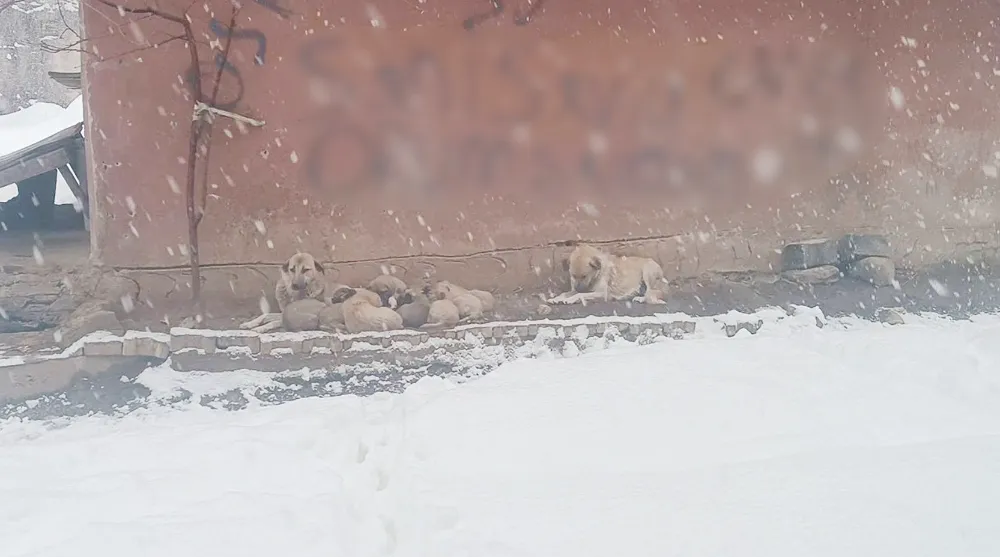 Muş'ta günlerdir etkisini sürdüren ve kenti beyaza bürüyen karakışta yiyecek bulmakta güçlük çeken sokak köpeği ve 12 yavrusuna hayvanseverler sahip çıktı.
