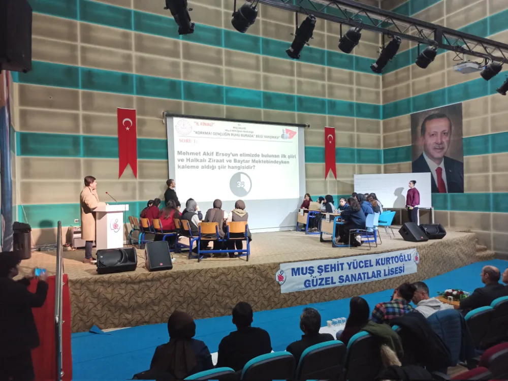 Muş İl Millî Eğitim Müdürlüğü koordinesinde, Muş Şehit Yücel Kurtoğlu Güzel Sanatlar Lisesi Konferans Salonu’nda düzenlenen programda il ve ilçe yöneticileri, öğretmenler ve öğrenciler hazır bulundu. İl genelinde yapılan yarışmalar sonucunda finale yükselen okullar, birincilik için kıyasıya mücadele etti.