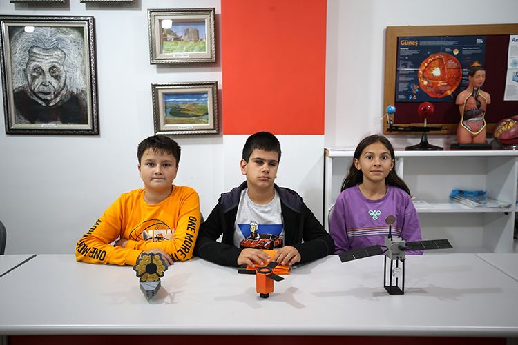 Teknoloji Tasarım Öğretmeni Birsen Geçer'in danışmanlığında "absolut" (kusursuz) kulağa sahip Çalışcı, Melek Şehri Kutlu ve Hamza Eğmen Kirli, üç boyutlu yazıcılar kullanarak gök cisimleri, ayın evreleri, güneş sistemi, gök taşları, kuyruklu yıldız ile iç ve dış gezegenlerin şekillerini kabartmalı olarak çıkarttı.