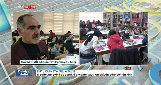 Muş İl Halk Kütüphanesi 7/24 hizmet veriyor. Özellikle kış mevsiminin tam anlamıyla yaşandığı Muş´ta öğrenciler, İl Halk Kütüphanesi´nden istifade etmeye başladı. Günde yaklaşık olarak 800 kişinin ziyaret ettiği İl Halk Kütüphanesi, sosyal faaliyetleri ile gençlere hizmet veriyor.8 okuyucu, okul öncesi ve süreli yayınlar salonları, görme engeliler bölümü, resim ve ahşap tasarım salonu, kent kitaplığı, kafeterya ile 7/24 saat modern bir şekilde hizmetin verildiği kütüphaneye velilerde ilgi gösteriyor. Kütüphanenin bu çalışması TRT Kurdi Sabah Haberlerinde de yer aldı.
