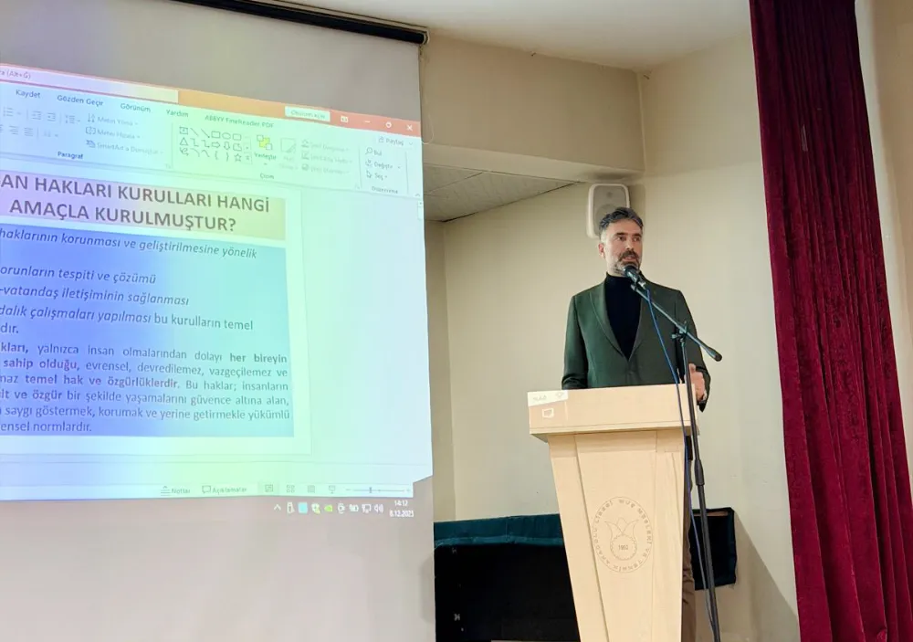10 Aralık Dünya İnsan Hakları Günü kapsamında düzenlenen seminerde, insan haklarının önemi ve İl İnsan Hakları Kurulu'nun görevleri öğrencilere kapsamlı bir sunumla anlatıldı.