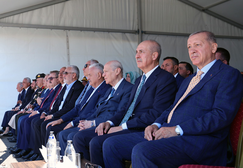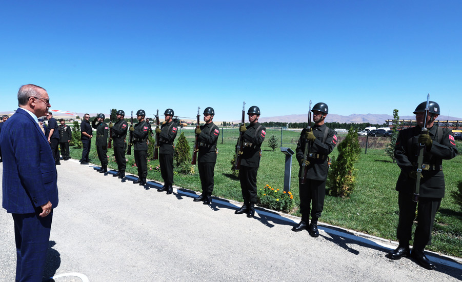 Cumhurbaşkanı Erdoğan, milletçe bin yıldır bunun yapıldığını vurgulayarak, "İrili ufaklı onlarca beyliğiyle, Selçuklusuyla, Osmanlısıyla, Cumhuriyeti'yle hep aynı vatan davasının peşinden gittik, gidiyoruz. Yol uzun. Hacı Bayram'ın, Hacı Bektaş'ın gönüllere, ilmik ilmik işlediği, Mimar Sinan'ın nakış nakış taşa kazıdığı bir serencamı beraberce yaşadık. Acısıyla, tatlısıyla bu coğrafyada yaşadığımız her hadise bize vatanımızın kıymetini tekrar tekrar gösterdi. Malazgirt Zaferi'ni yeni bin yılın başında kazanmıştık. Şimdi ikinci bin yılın başında yine aynı heyecanla buradayız" diye konuştu.
