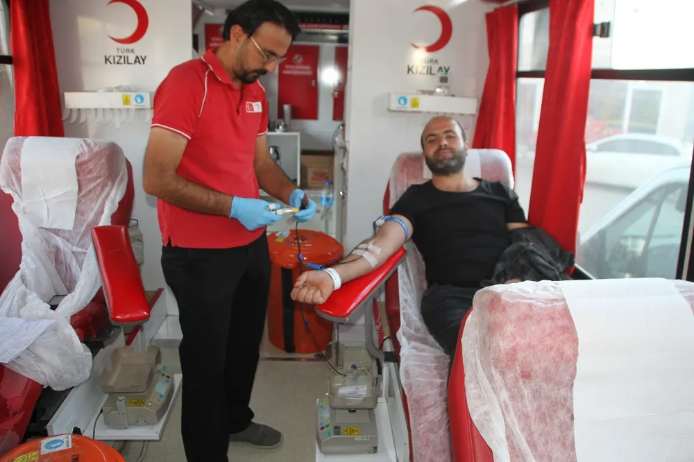 Kızılay kan toplama aracı, Muş’un Malazgirt ilçesinde 2 günde 50 ünite kan topladı.