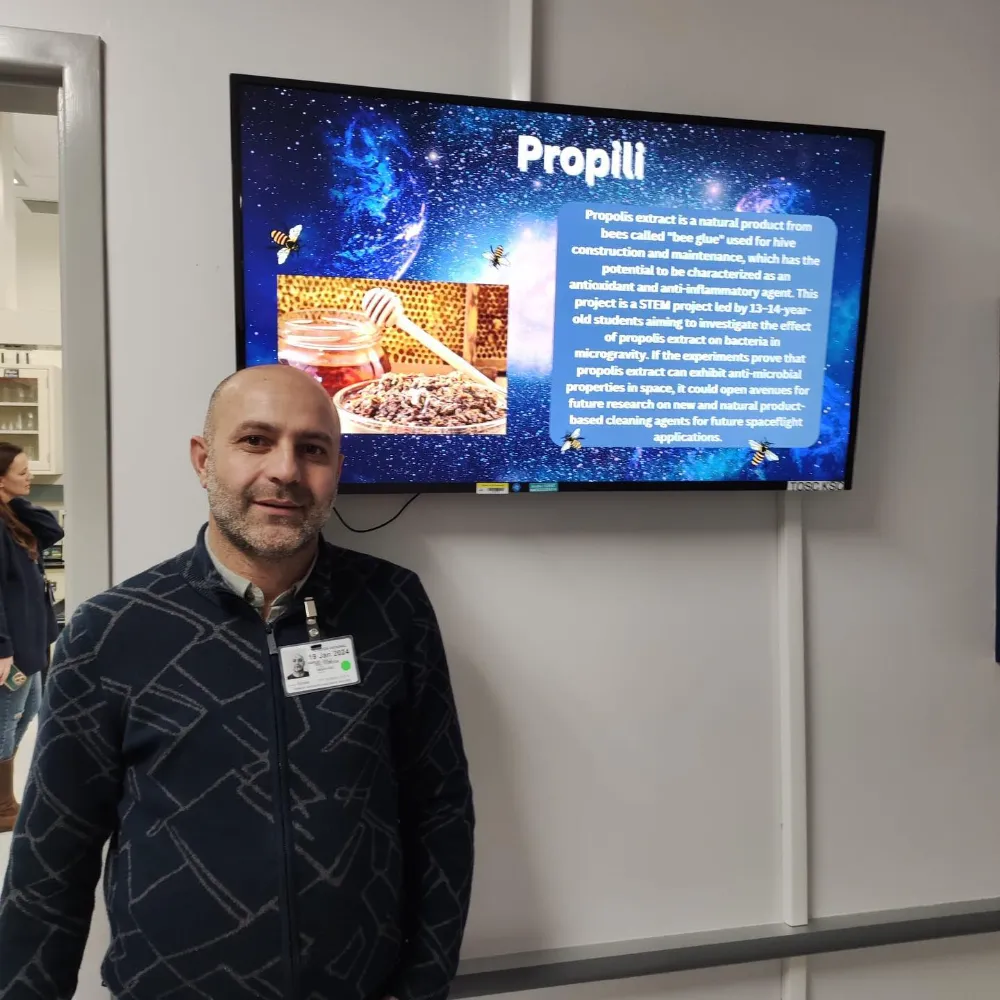 Muş Bilim ve Sanat Merkezi öğrencileri Zeynep Nehir Çamlıca, Dilşah İmran Avcı ve Baver Bedirhan Bingöl’ün, öğretmenleri Birsen Geçer danışmanlığında hazırladıkları ve ‘Propolisin Antibakteriyel Etkisi’ başlığıyla kabul edilen "PRANET" deneyi, propolisin mikro yer çekimi ortamındaki bakteriler üzerindeki etkisini araştıracak. Dr. Öğretim Üyesi Harun Önlü’nün de yer aldığı kontrol ve deney grupları ile propolisin antibakteriyel etkisi test edilecek ve sonuçların yer çekimli ortamla benzerlik gösterip göstermediği karşılaştırılacak.