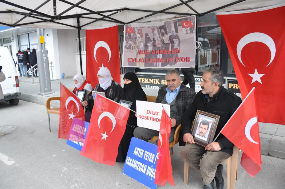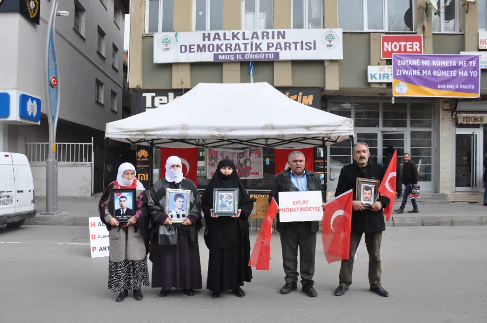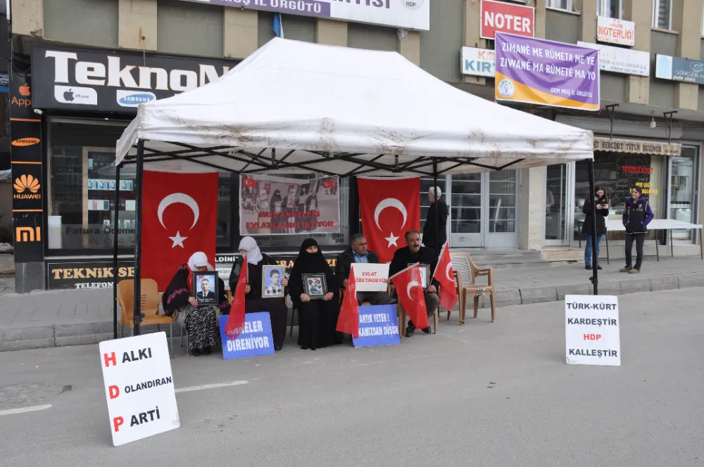 Muş'ta çocuklarının terör örgütü PKK tarafından dağa götürülmesinden HDP'yi sorumlu tutan aileler, partinin il başkanlığı binası önündeki oturma eylemini sürdürdü.