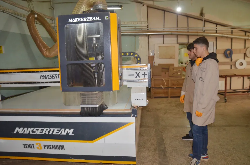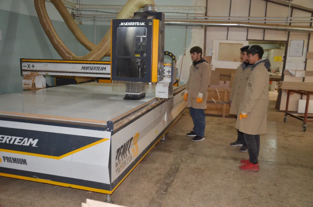 Altay, okulun aynı zamanda sanayide ihtiyaç duyulan ara eleman açığını kapattığını ve mezun öğrencilerin sektöre nitelikli iş gücü olarak kazandırıldığını vurguladı: “Bu hizmeti toplumun tüm kesimlerine, kamu kuruluşlarına, özel şirketlere ve vatandaşlarımıza sunabiliyoruz. Hem öğrencilerimizin gelişmesine hem de topluma ciddi bir katkı sağlıyoruz. Okulumuzda hem iç alan mobilyaları hem de dış mekan ürünleri üretiliyor. Dolap, masa, sandalye, sehpa gibi ürünlerin yanı sıra çardak, bank ve kameriye gibi dış mekan mobilyalarını da üretiyoruz. Okulumuz, adeta bir fabrika gibi harıl harıl çalışıyor ve üretim gerçekleştiriyor.”