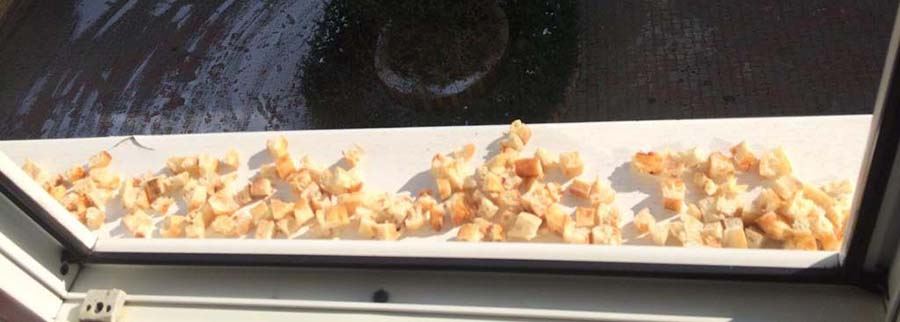 Özelikle apartmanlarda yaşayan vatandaşlar tarafından bırakılan yiyecekleri başta serçe gibi minik kuşlar olmak üzere karga ve güvercinler alarak yiyorlar.