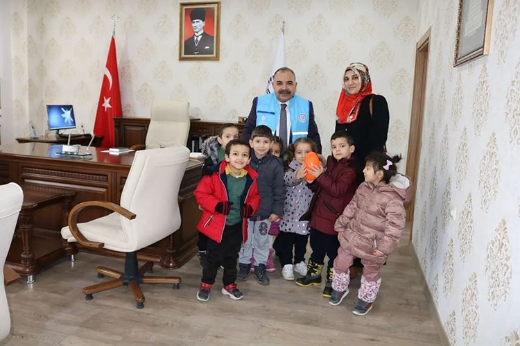 Kampanyaya destek veren minik öğrenciler ve kuran kursu hocaları İl Müftüsü İbrahim Halil Demir’i makamında ziyaret ederek, topladıkları yardımlarını takdim ettiler. İl Müftüsü Demir, desteklerinden dolayı din görevlilerine teşekkür ederek miniklere ise çeşitli ikramlarda bulundu.