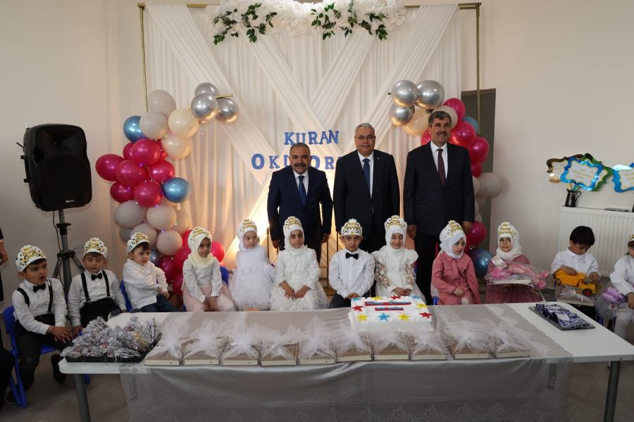 Konuşmaların ardından, minik öğrenciler Kuranı Kerime geçişinden dolayı pasta kesimi yapıldı. Vali Gündüzöz ile Başkan Asya daha sonra minik öğrencilere belge ve hediye takdiminde bulunarak, hatıra fotoğrafı çektirdi.