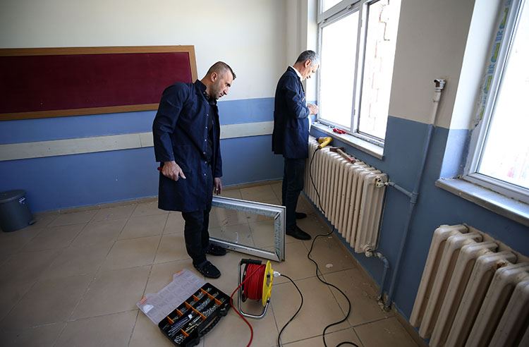 Okul idarecilerinin talebi üzerine kendilerine tahsis edilen araçla kent merkezi ile ilçe ve köylerdeki okulları ziyaret eden ekip, tespit ettikleri eksilikleri giderip ihtiyaç duyulan onarımları yapıyor.