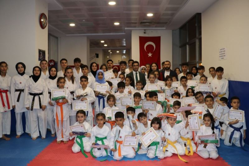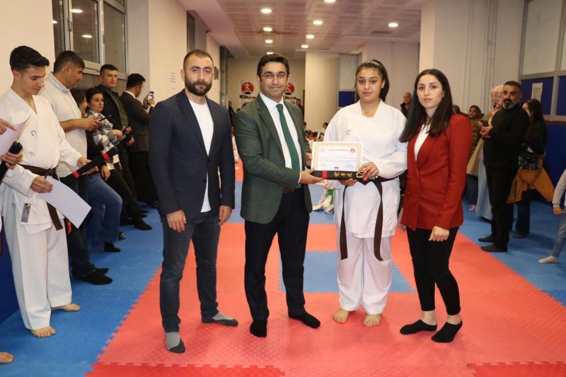 Bir üst kuşağa terfi etmek için girdikleri sınavlarda başarılı olan sporcular için kuşak töreni düzenledi. Yeni Kapalı Spor Salonunda düzenlenen kuşak törenine Gençlik ve Spor İl Müdürü Mehmet Arif Taşdemir’de katılarak sporcuların heyecanına ortak oldu.