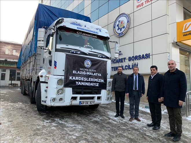 Türkiye Odalar ve Borsalar Birliği´nin organizasyonuyla başlatılan yardım kampanyasına katılan Muş Ticaret ve Sanayi Odası Başkanı Erdal Koç, AFAD Koordinasyon Merkezi´nden sorumlu vali yardımcısıyla yapmış olduğu görüşmeden sonra ağırlığı çocuk bezi olmak üzere, ısıtıcı, hijyen malzemesi, battaniye, kuru gıda gibi yaşam malzemelerinden oluşan bir tır yardımı deprem bölgesine sevk etti.