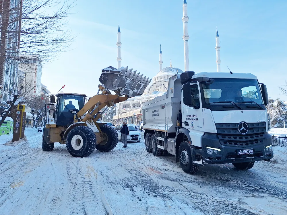 Muş Belediyesi, kent merkezinde kar küreme, yol açma ve tuzlama çalışmalarını 7/24 esasına göre yürütüyor. Özellikle hastane yolları, okul çevreleri, kamu kurumlarının bulunduğu güzergâhlar ve yoğun kullanılan ana yollar öncelikli olarak ele alınırken, ana arterlerde biriken kar kütleleri belirli aralıklarla temizlenerek kamyonlarla kent dışına sevk ediliyor. Ara sokaklarda ise program dâhilinde çalışmalar sürdürülüyor.