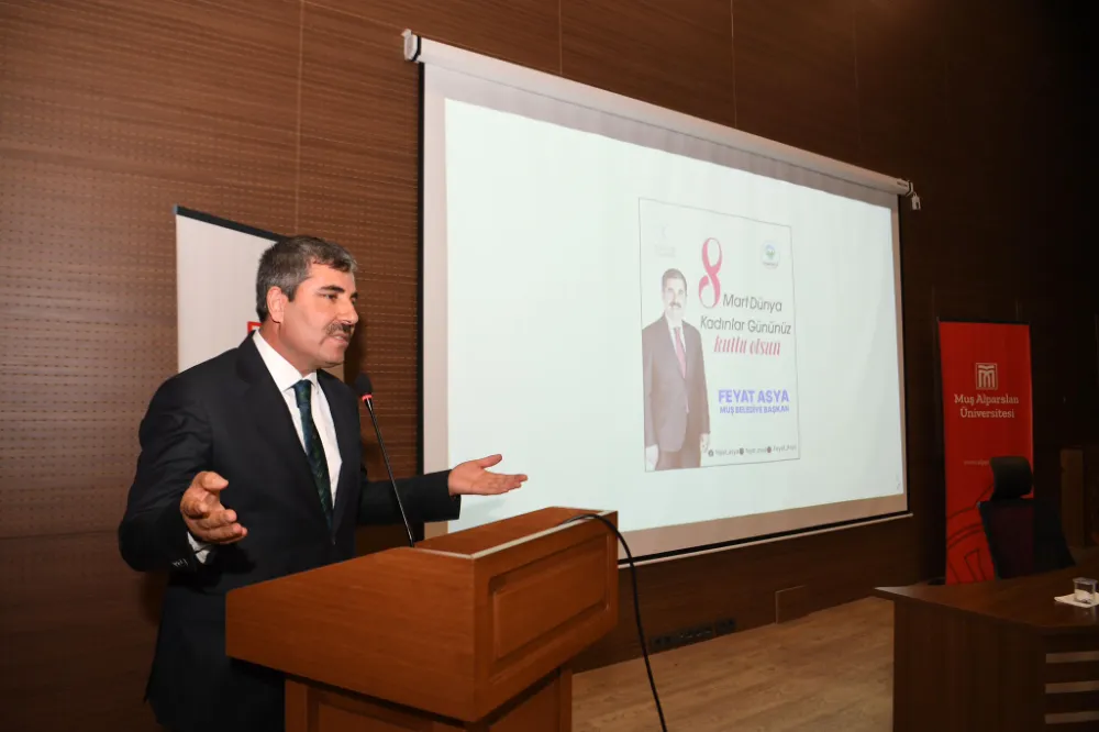 Programda bir selamlama konuşması yapan Muş Belediye Başkanı Feyat Asya, günün anlam ve öneminden söz ederek, tüm kadınların gününü kutladı. Kadınların toplumun önemli değerleri olduğunu belirten Başkan Asya, “Dostlarla birlikte iğnenin deliği meydan kadar geniştir. Sevmediğin insanlarla meydanlar hücre gibi görünür derler. Dolayısıyla bizler salonların darlığında, gönüllerinizin genişliğine sığınıyoruz. Şehrimizin kıymetli, emektar hanımefendileri, şehrimizin inşası ve ihyasında eşleriyle birlikte özellikle dışarıdan gelip şehrimizde hayırlı hizmetler yapan kıymetli hanımefendiler, sevgili kızlar, gençler, öğrenciler, ben öncelikle emeğin, güzelliğin, sevginin, hasretin, hayalin, aşkın muhatabı siz kadınların gününü, gönülden tebrik ediyorum. Bugün; bu şehrin kardeşliğine, güzelliğine, siyasetine, ekonomisine, inşasına ve ihyasına katkı sağlamanıza vesile olmanızı Cenab-ı Allah’tan temenni ediyorum, dua ediyorum” dedi.