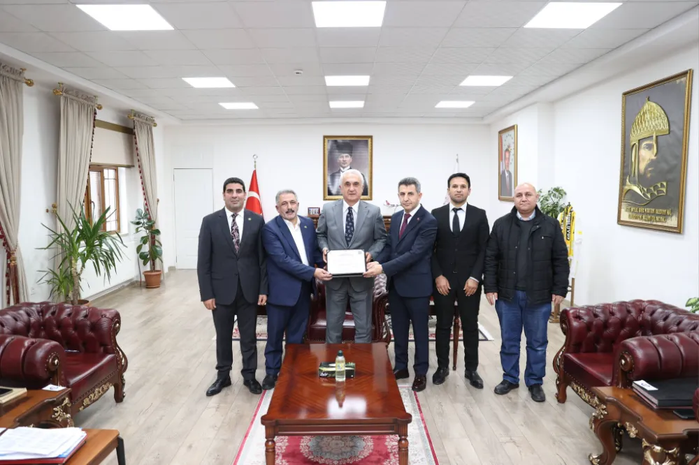 İl Tarım ve Orman Müdürü Necattin Gönç, beraberindeki Hayvan Sağlığı Yetiştiriciliği ve Su Ürünleri Şube Müdürü Yasin Aydın, Muş İli Damızlık Koyun Keçi Yetiştiricileri Birliği Yönetim Kurulu Başkanı Sami Konuk, Yönetim Kurulu Başkan Yardımcısı Nimet Salkım ve Birlik Sorumlu Müdürü Evliya Karaman ile birlikte Muş Valisi Avni Çakır’ı ziyaret ederek, “Birinci Derece Tarımsal Örgüt Belgesi”ni takdim etti.