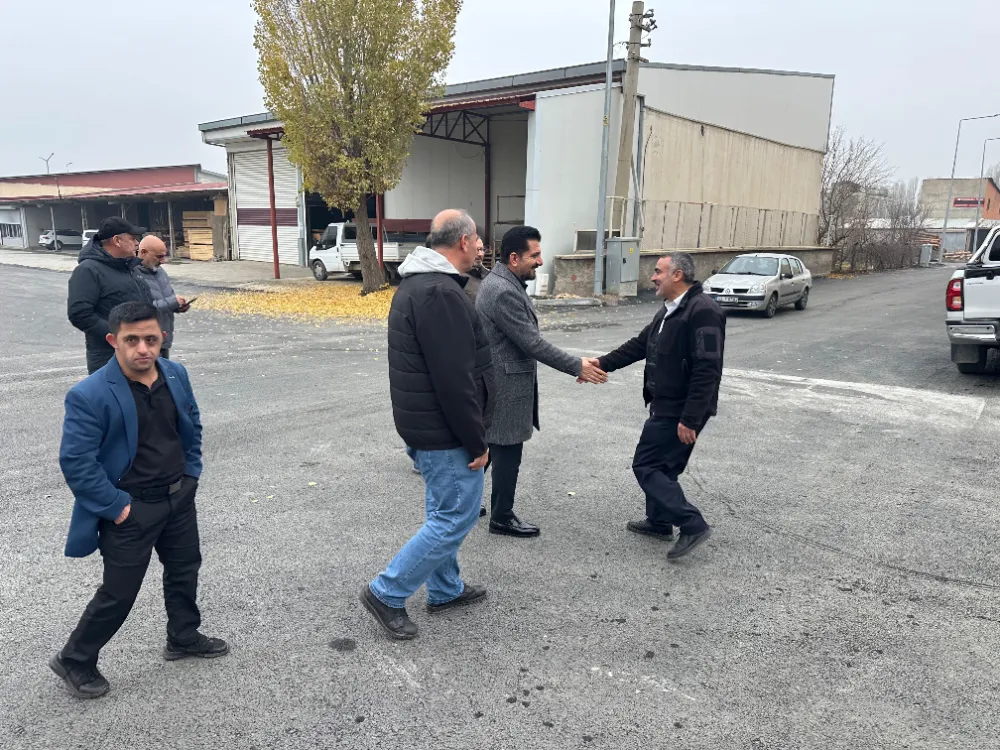 Küçük Sanayi Sitesi’nde yapılan asfalt çalışmalarını inceleyen ve burada faaliyet gösteren üyeleri ziyaret eden Başkan Koç, asfalt döşeme çalışmalarının yapılmasında emeği geçenlere teşekkür etti