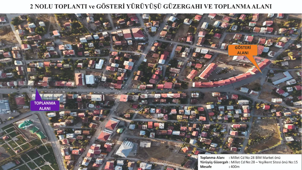 İkinci güzergâhta ise Millet Caddesi No:28 BİM Market önü toplanma yeri olarak açıklandı. Yürüyüşün Millet Caddesi boyunca Yeşilkent Sitesi önündeki miting alanına kadar süreceği bildirildi. Dağılımın yine düzenlenen plan doğrultusunda yapılacağı vurgulandı.