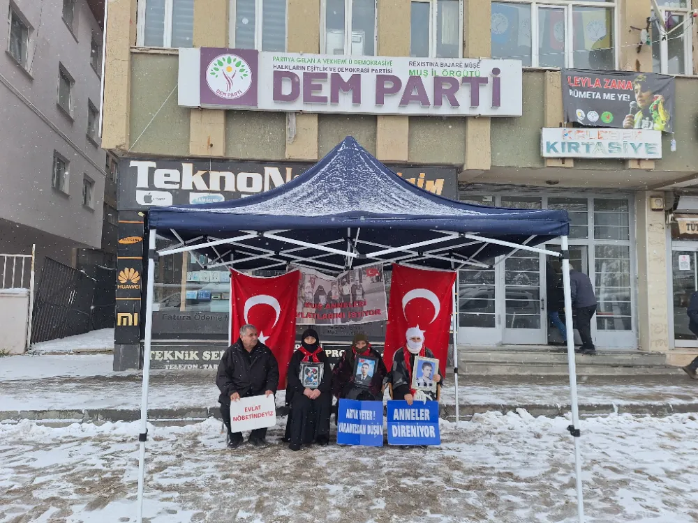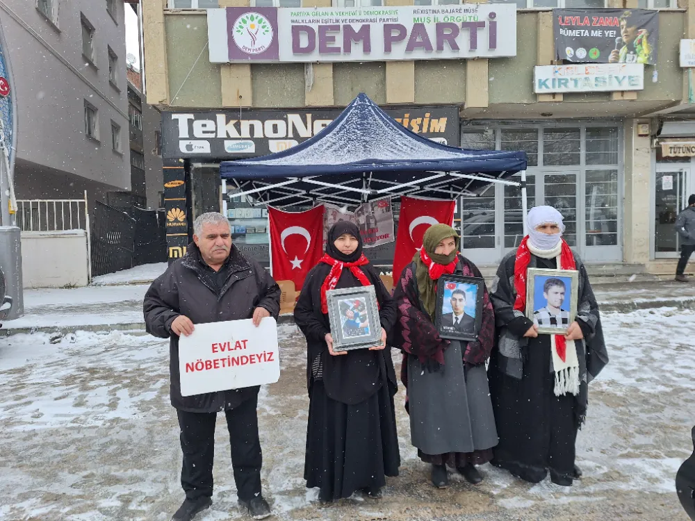Muşlu aileler, bir yılı daha evlatlarından ayrı geçirdi. Kar ve soğuğa rağmen süren nöbette hem hasretlerini hem de çocuklarına kavuşma umutlarını canlı tutuyorlar.