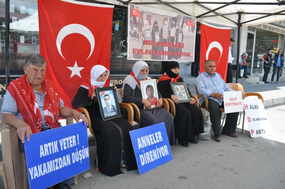 Muş’ta çocuklarını terör örgütü PKK’nın pençesinden kurtarmak isteyen ailelerin DEM Parti il binası önündeki eylemi devam ediyor. Aileler, çocuklarının en kısa sürede güvenli bir şekilde evlerine dönmesini beklerken, toplumun da bu konuda destek olmasını istedi. Çocuklarına kavuşma ümidiyle her hafta çarşamba günü DEM Parti il binası önünde bir araya gelen aileler, "Anneler direniyor" ve "Yeter artık evlatlarımızı bırakın" pankartları açtı. Anne ve babalar, yıllardır hasretle bekledikleri çocuklarına teslim olmaları için çağrıda bulundu.